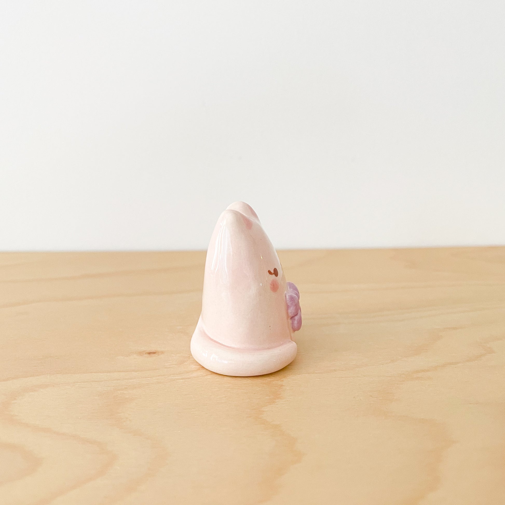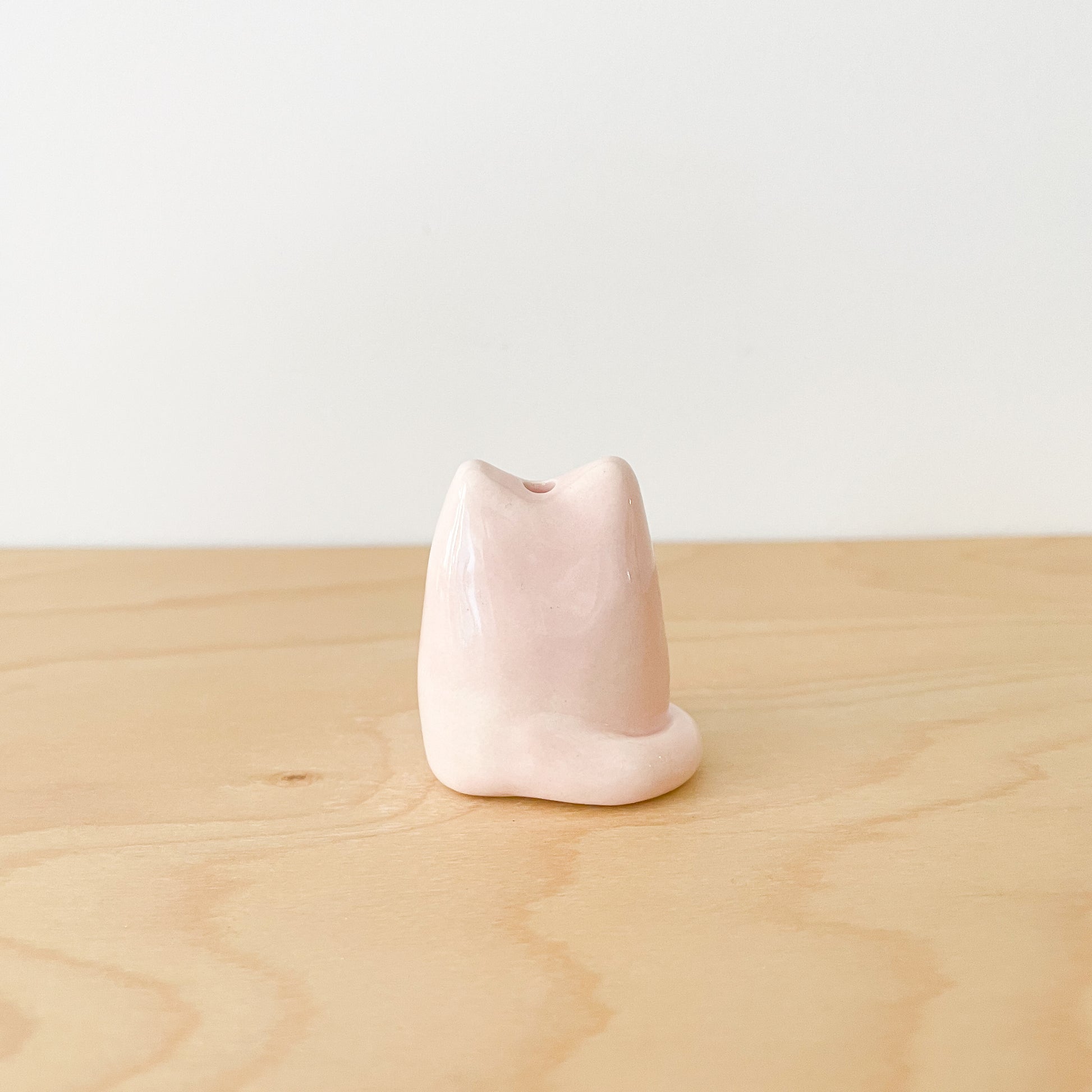 Adorable feline charm meets functional florals! This delightful mini vase features a sweet pink cat wearing a precious purple bow, perfect for displaying a dried flowers or your cat whiskers.