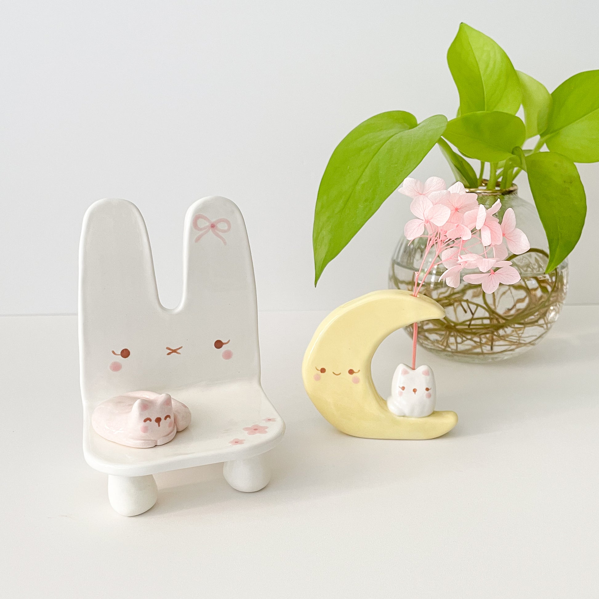 Jazz up your space with the Bunny Trinket Chair! This adorable decor item features a cute bunny design and is perfect for displaying your treasures.