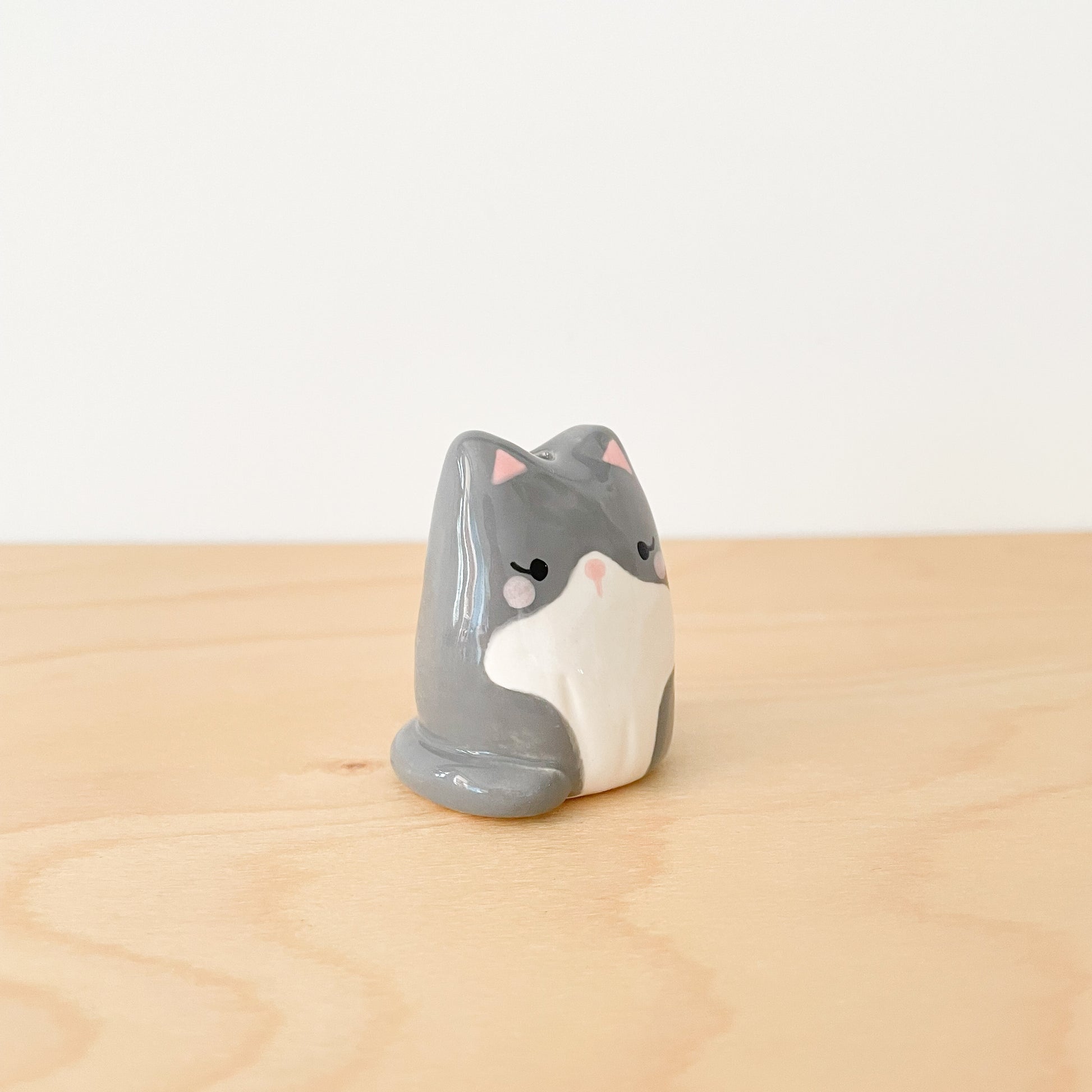 Grey Tuxedo Cat Mini Vase