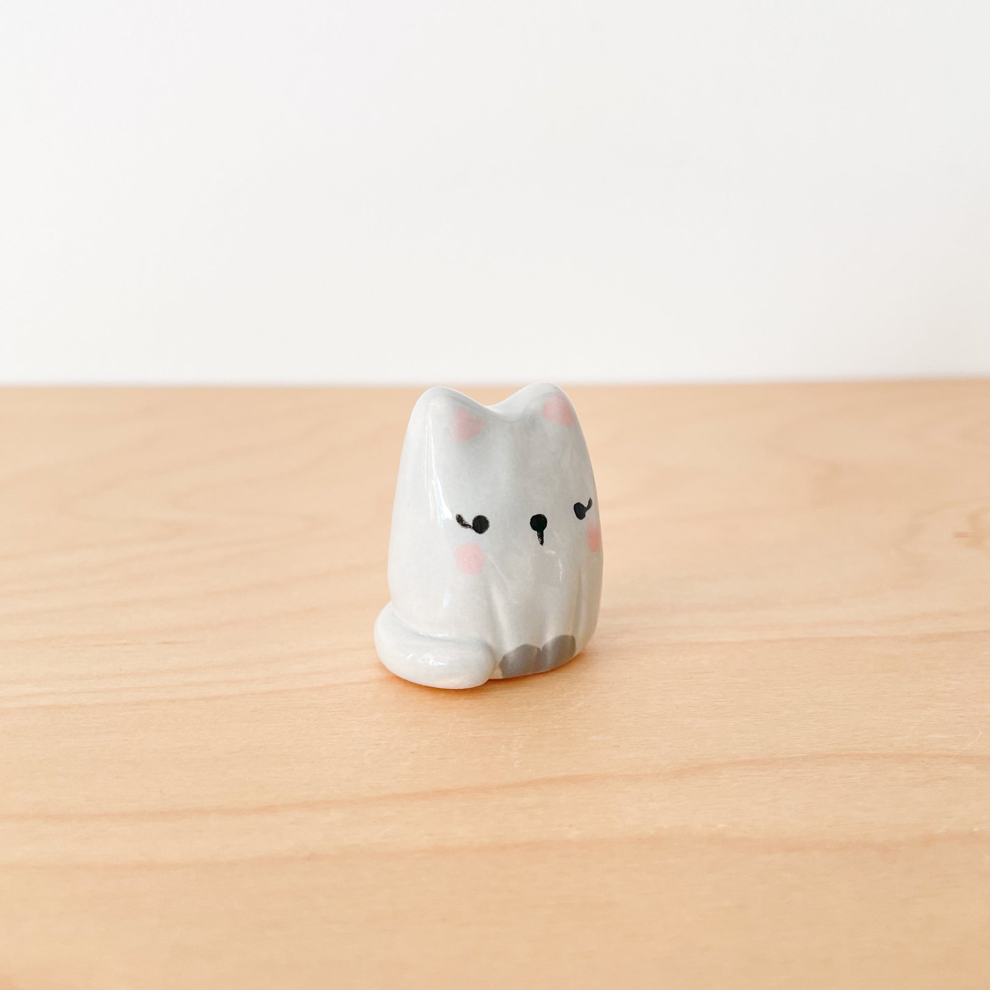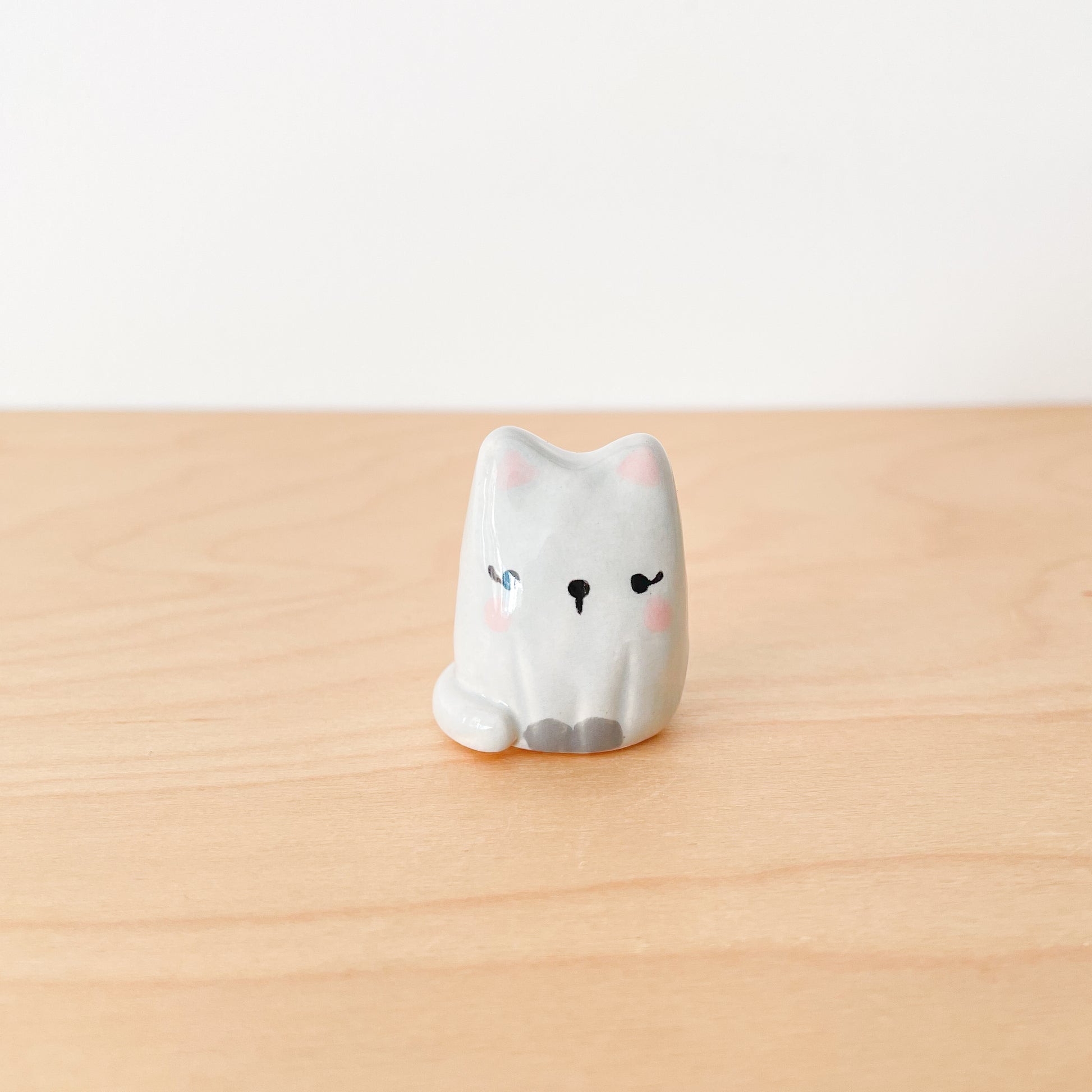Add a touch of whimsy to your desk with our Grey Cat Desk Pal! This cute little cat, handmade from ceramics and is sure to bring a smile to your face.