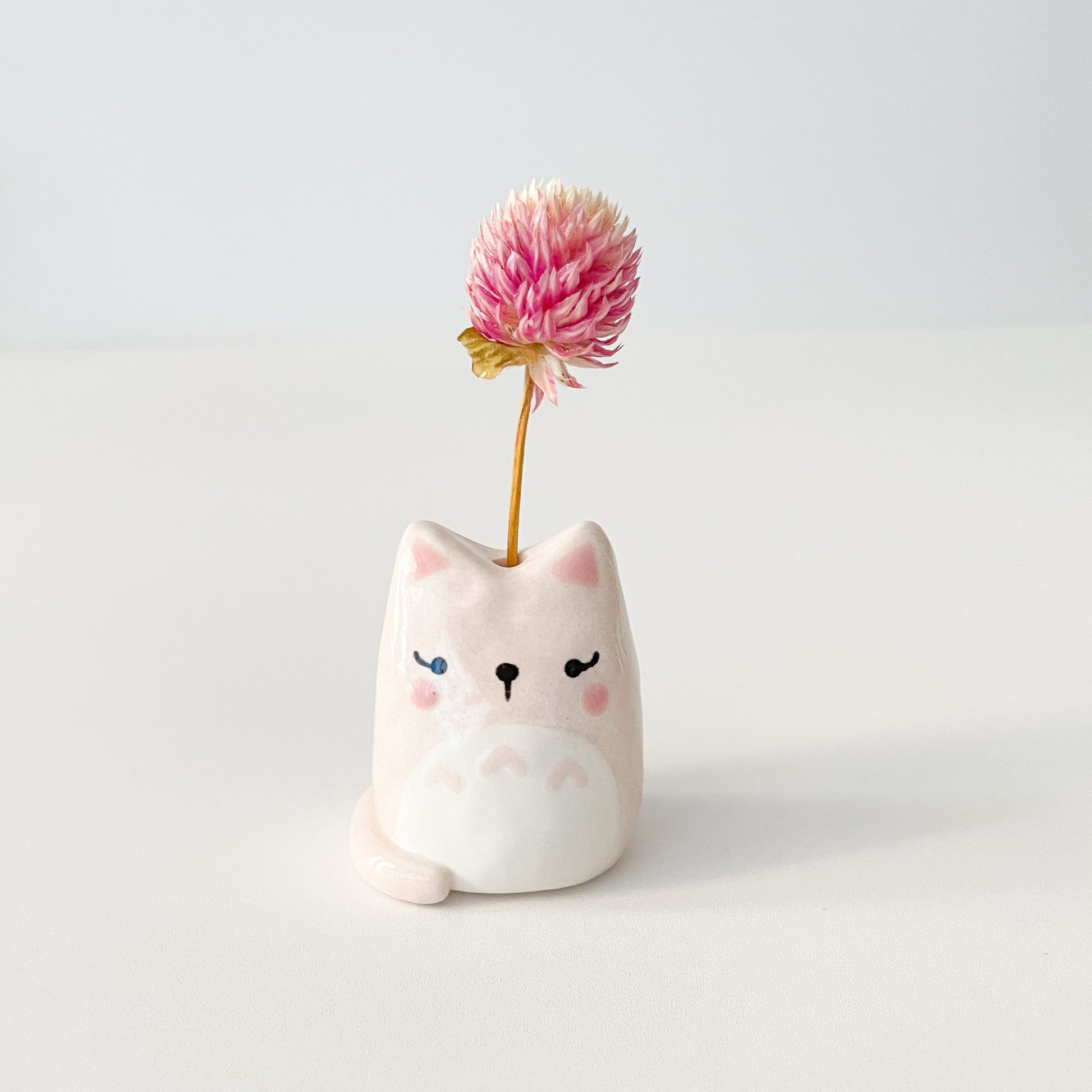 Add a touch of whimsy to your space with this Pink Totoro Cat Mini Vase. Perfectly sized for dried flowers, it brings a playful charm inspired by your favourite forest spirit.