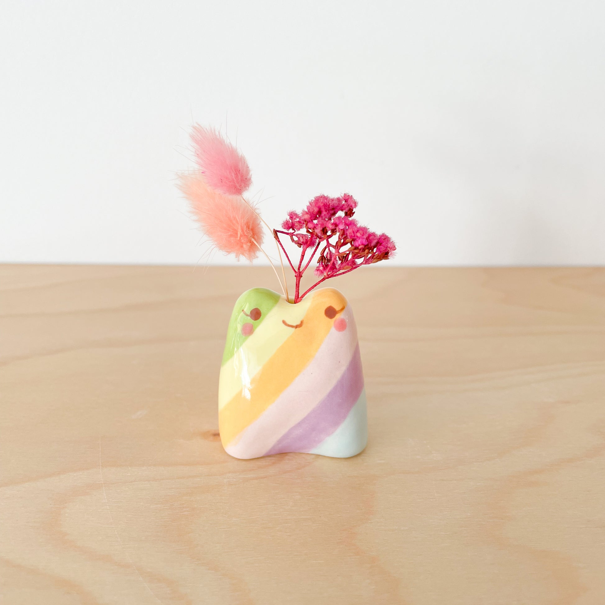 Brighten up any room with this Rainbow Frog Mini Vase. The perfect pop of colour and playful touch to your decor. Makes a fun and unique addition to any collection.
