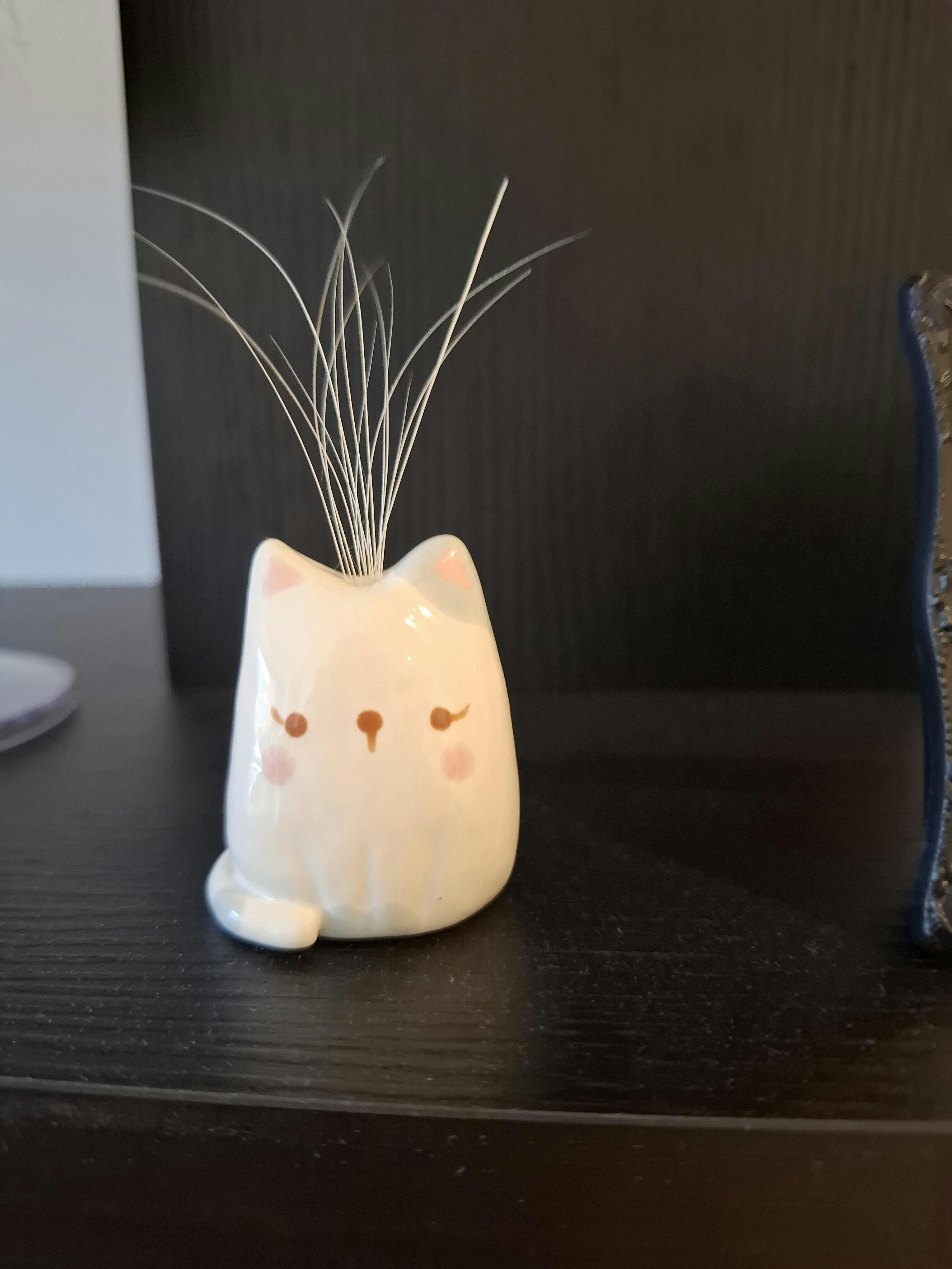 This was a gift for my cat loving sister and she loves it. It's very cute and well-made. She already has it on her desk with some small dried flowers and it looks adorable!