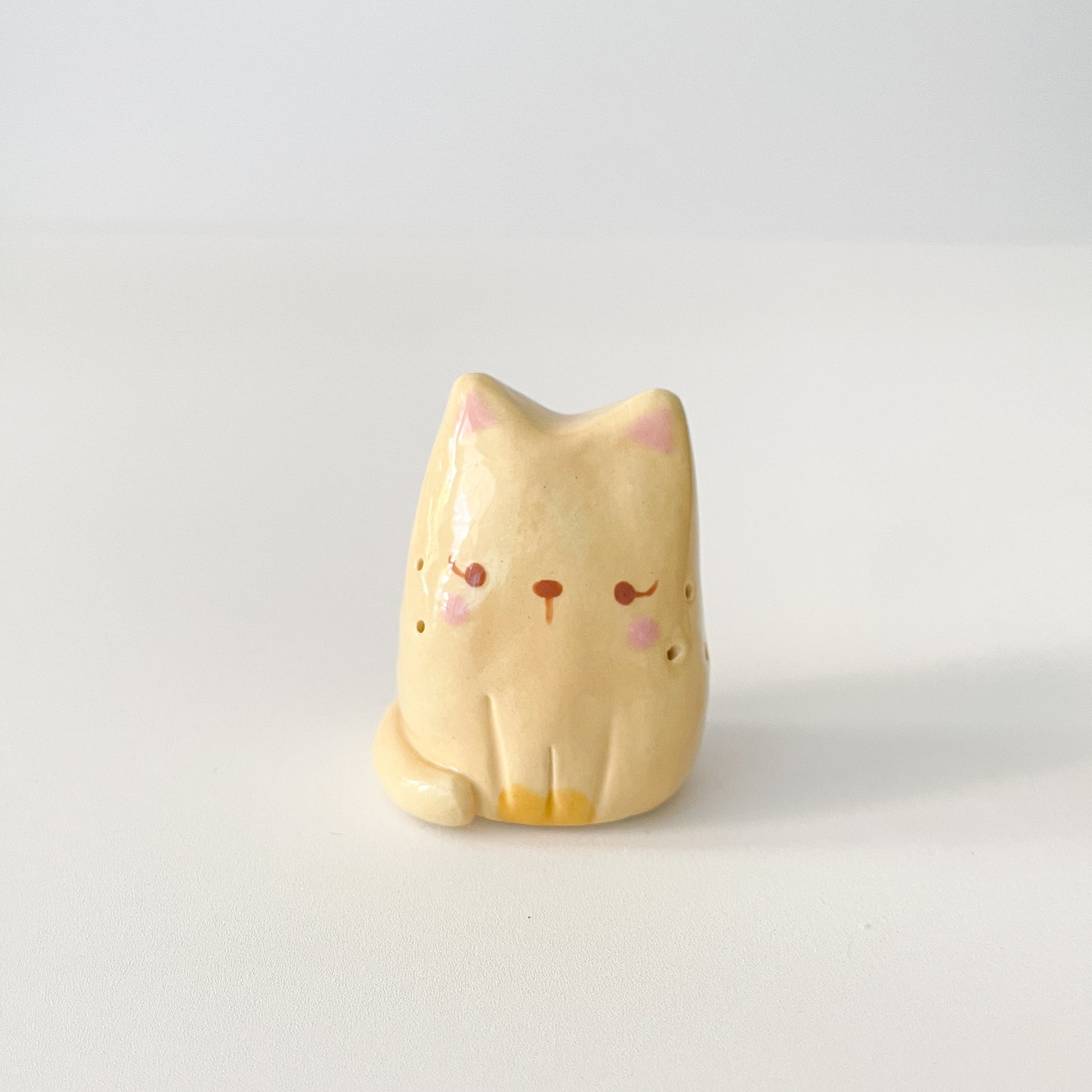 A charming caramel cat mini vase for displaying your cats whiskers. Purrfect for cat lovers!